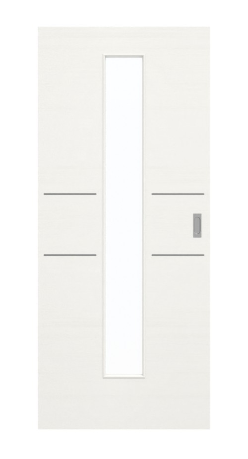 Wewnętrzna warstwa z pełnej płyty wiórowej zapewnia stabilność skrzydła drzwiowego o grubości około 40 mm. Skrzydło drzwi zostanie dostarczone wraz z uchwytem w kolorze stali nierdzewnej o prostokątno-owalnym kształcie oraz z rowkiem prowadzącym w dolnej części.