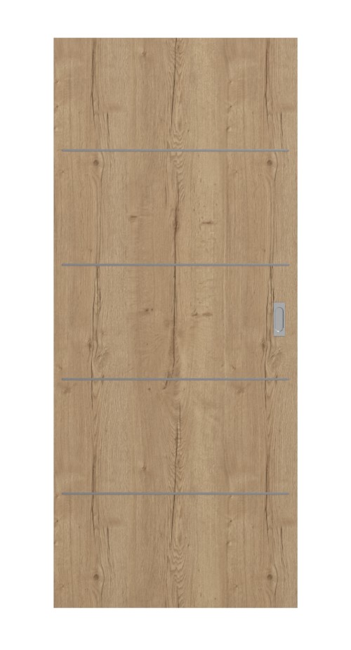 W swej istocie drzwi o grubości ok. 40 mm składają się z płyty wiórowej rurowej, która zapewnia solidną jakość. W cenie zawarte są nie tylko skrzydło drzwiowe, ale także rowek prowadzący w podłodze oraz uchwyt w kolorze stali nierdzewnej .