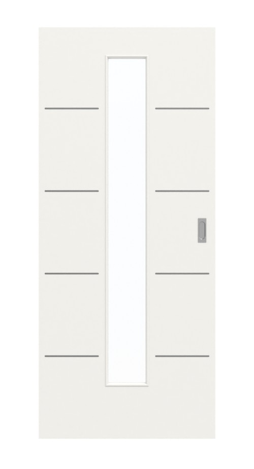 Dokładnie pośrodku skrzydła drzwiowego znajduje się wąskie wycięcie na szybę. Symetryczny design podkreślają ozdobne lizenami, które rozciągają się równomiernie po obu stronach otworu okiennego. Jasny dekor w białym lakierze 9016 w sprytny sposób wnosi świeżość i przejrzystość do każdego pomieszczenia, nadając otoczeniu przyjazny charakter. W codziennym użytkowaniu łatwa w pielęgnacji powłoka CPL sprawdza się również dzięki swojej wysokiej odporności na zarysowania i ścieranie.
