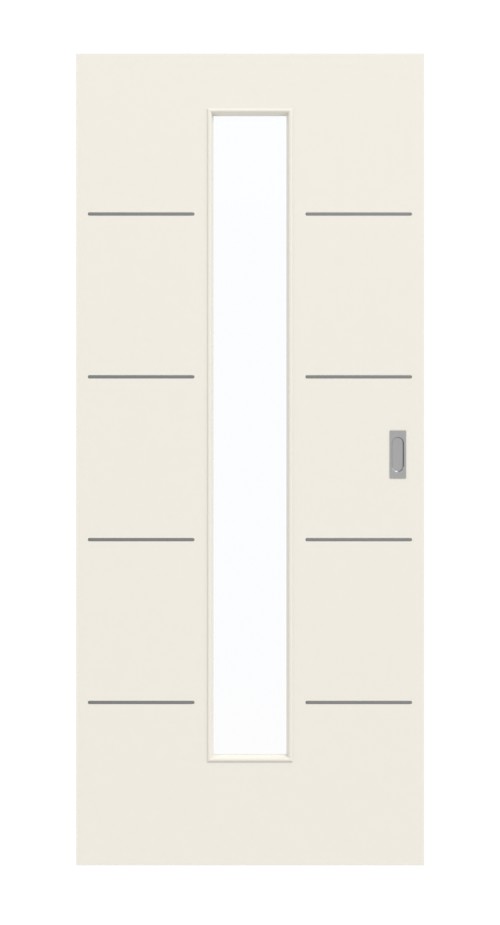 Dokładnie pośrodku skrzydła drzwiowego znajduje się wąskie wycięcie na szybę. Symetryczny design podkreślają ozdobne lizenami, które rozciągają się równomiernie po obu stronach otworu okiennego. Neutralny dekor na białym lakierze 9010 doskonale komponuje się zarówno z nowoczesnym, jak i klasycznym wystrojem wnętrz. Wytrzymała powierzchnia CPL jest odporna na zarysowania, ścieranie i uderzenia oraz można ją łatwo wyczyścić.