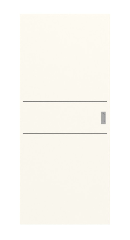 Dwie poziome listwy otaczają klamkę od góry i od dołu. Ten prosty, perłowo-biały wzór z łatwością wkomponuje się w każdy styl wnętrza. Powierzchnia CPL sprawdza się w codziennym użytkowaniu dzięki łatwości w pielęgnacji oraz wysokiej odporności na ścieranie i zarysowania.