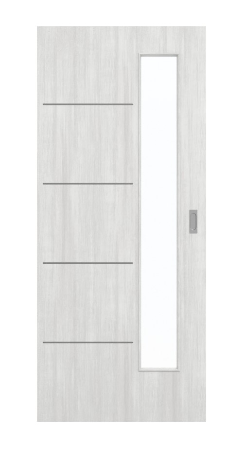 Długie wycięcie w szybie obok uchwytu wpuszczanego muszlowego przyciąga wzrok. Konkurencję stanowią cztery delikatne lizeny, które umiejętnie dopełniają nowoczesny design. Nowoczesny i odświeżający efekt daje szary wzór o podłużnym układzie Authentic Grigio. W codziennym użytkowaniu łatwa w pielęgnacji powłoka CPL sprawdza się również dzięki swojej wysokiej odporności na zarysowania i ścieranie.