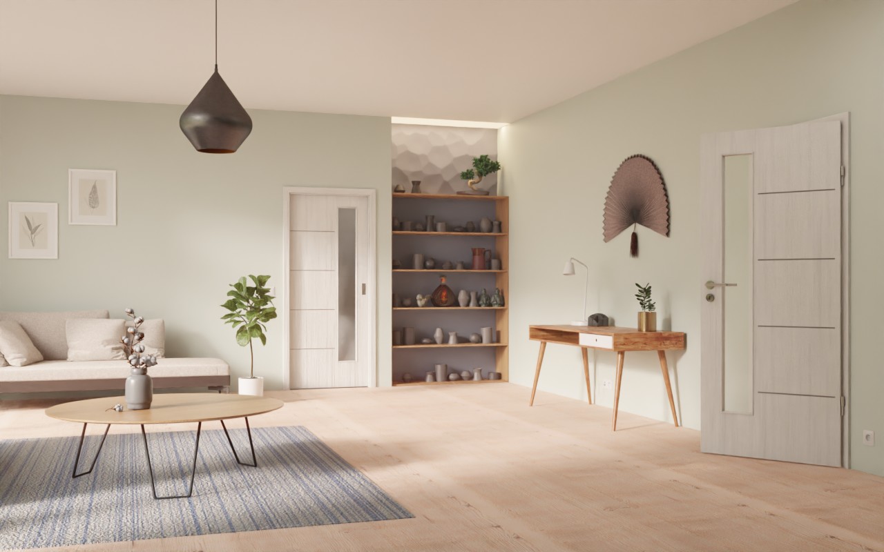 Nowoczesne drzwi przesuwne marki zachwycają łatwą w pielęgnacji okleiną CPL i dekoracyjnymi listwami: