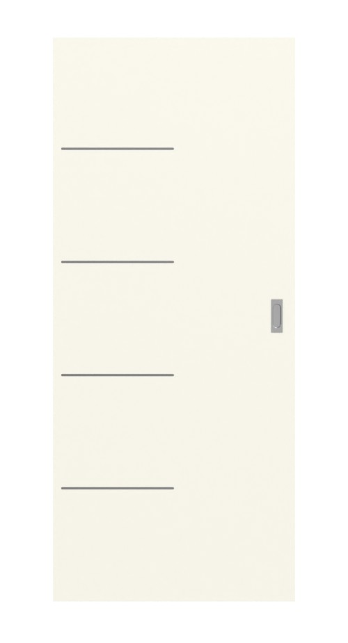 Rdzeń z wiórów rurowych stanowi solidną podstawę modelu, dodatkowo wzmocnioną ramą z płyty MDF i płytą HDF. W zestawie wraz ze skrzydłem drzwiowym znajduje się rowek prowadzący przy podłodze oraz uchwyt w kolorze stali nierdzewnej .