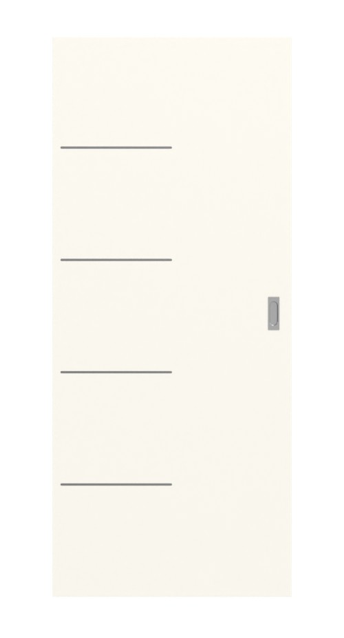 Cztery wąskie lizeny zdobią te drzwi designerskie, nadając im elegancki wygląd. Ten prosty, perłowo-biały wzór z łatwością wkomponuje się w każdy styl wnętrza. Powłoka CPL, odpowiednia do codziennego użytku, jest odporna na zarysowania i uderzenia. Ponadto łatwo ją wyczyścić.