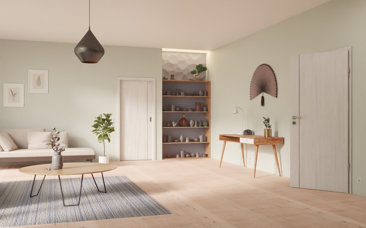 Atrakcyjna marka drzwi przesuwnych imponuje odporną na uderzenia powłoką CPL oraz wąskimi listwami: