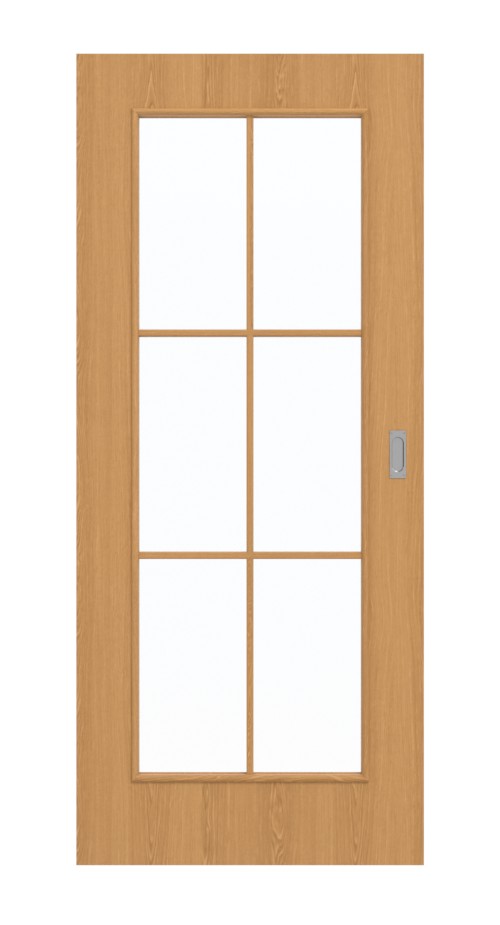 Oświetlenie pomieszczeń zapewnia duża powierzchnia szklana, umieszczona pośrodku skrzydła drzwiowego. Jest ona elegancko podzielona przez ramę z szprosami . Drzwi przesuwne zachwycają swoim dynamicznym dekorem dębowym. Płynne słoje nadają drzwiom urozmaicony wygląd. Złocistobrązowy kolor imitacji drewna prezentuje się bardzo przyjemnie. Wytrzymały materiał powierzchniowy CPL wykazuje odporność na zużycie mechaniczne.