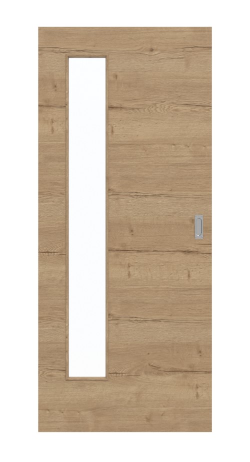Dzięki wąskiemu wycięciu na oświetlenie po stronie zawiasów skrzydło drzwi zyskuje indywidualny charakter. Dzięki dekorowi dębowemu o układzie poprzecznym drzwi przesuwne prezentują się nowocześnie. Rustykalny styl tworzy przytulną atmosferę w Twoim domu. Wyraziste słoje ciemno kontrastują z tłem. Światło, wysoka temperatura i ścieranie mechaniczne nie są w stanie uszkodzić wytrzymałej warstwy wierzchniej z HPL.