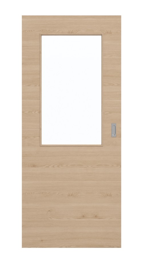 Jasną atmosferę w pomieszczeniach zapewnia duży przeszklony fragment, który zdobi górną część skrzydła drzwi. Wzdłużne usłojenia nadają naturalnemu dekorowi drewna nowoczesny charakter. Drzwi przesuwne tworzą przytulną atmosferę dzięki swoim naturalnym odcieniom. Powierzchnia wykonana z CPL charakteryzuje się ogromną wytrzymałością.