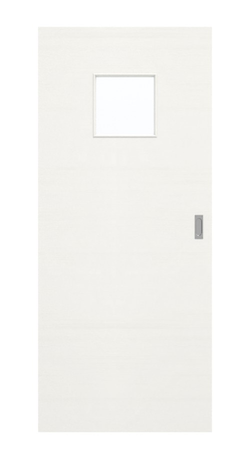 Indywidualny wygląd zapewnia kwadratowy otwór na światło, umieszczony na wysokości oczu w skrzydle drzwi. Model z drzwiami przesuwnymi, z białym wykończeniem drewnopodobnym , zachwyca swoim nowoczesnym wyglądem. Autentyczne słoje drewna biegną w poprzek skrzydła drzwi. Ten minimalistyczny wzór można z łatwością dopasować do każdego stylu wnętrza. Wierzchnia warstwa wykonana z CPL jest odporna na zużycie mechaniczne.