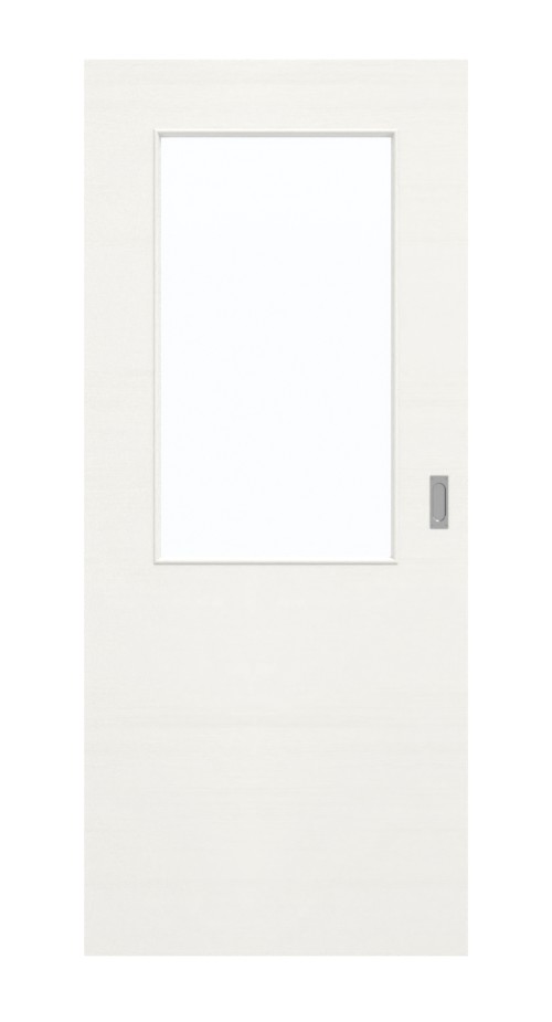 Szeroki, prostokątny otwór okienny w górnej części drzwi zapewnia obfity dopływ światła do wnętrza domu. Te nowoczesne drzwi przesuwne mają biały dekor drewniany . Na skrzydle drzwi widoczne są delikatne słoje biegnące w poprzek. Projekt jest stonowany i można go łączyć na wiele sposobów. Odporna na działanie światła warstwa wierzchnia z HPL okazuje się niezwykle wytrzymała.