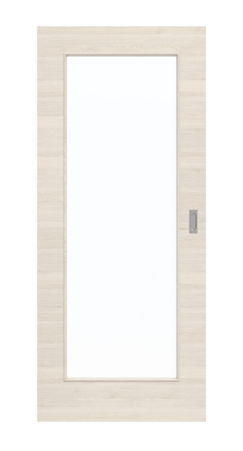 Duże wycięcie na szybę umieszczone pośrodku skrzydła drzwiowego zapewnia doskonały dopływ światła do pomieszczeń. Delikatne usłojenia zdobią powierzchnię w jasnym wyglądzie drewna. Poprzeczny dekor nadaje modelowi nowoczesny akcent. Wierzchnia warstwa z HPL jest wyjątkowo odporna na obciążenia mechaniczne, światło i ciepło.