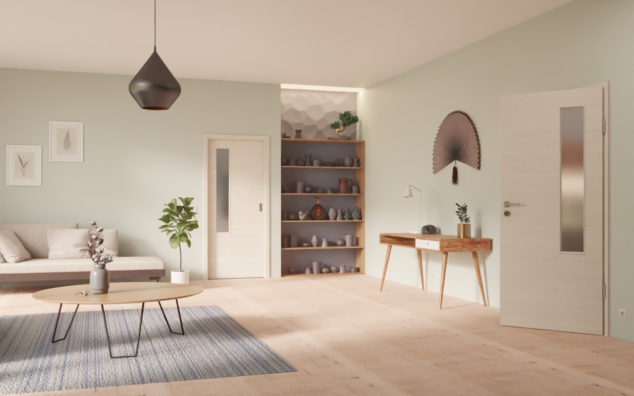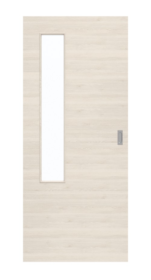 W boku opaski znajduje się podłużna szklana wstawka . Znajduje się ona w górnej części i zapewnia jasną atmosferę w Państwa pomieszczeniach. Model z drzwiami przesuwnymi urzeka swoim stonowanym wyglądem. Delikatne słoje zdobią powierzchnię o jasnym wyglądzie drewna. Rysunki są umieszczone w poziomie. Łatwa w pielęgnacji warstwa wierzchnia z HPL jest odporna na czynniki zewnętrzne, takie jak ciepło, światło i obciążenia mechaniczne.