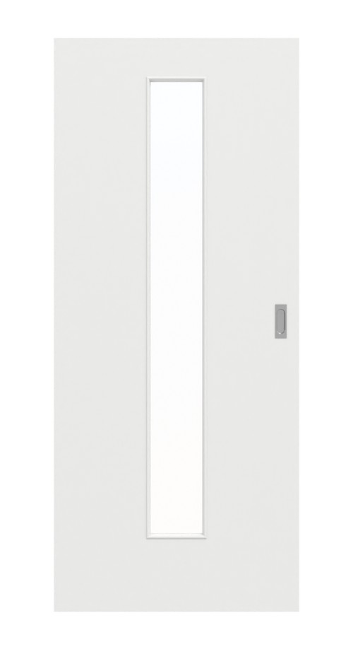 Dzięki umieszczonemu pośrodku wycięciu na szybę światło dzienne może wpadać nawet do pozbawionego okien korytarza. Powierzchnia G-TEC w matowym białym lakierze 9016 gwarantuje, że po dotknięciu nie pozostają odciski palców. Dzięki folii dekoracyjnej o supermatowym wykończeniu drzwi przesuwne prezentują się elegancko i nowocześnie.