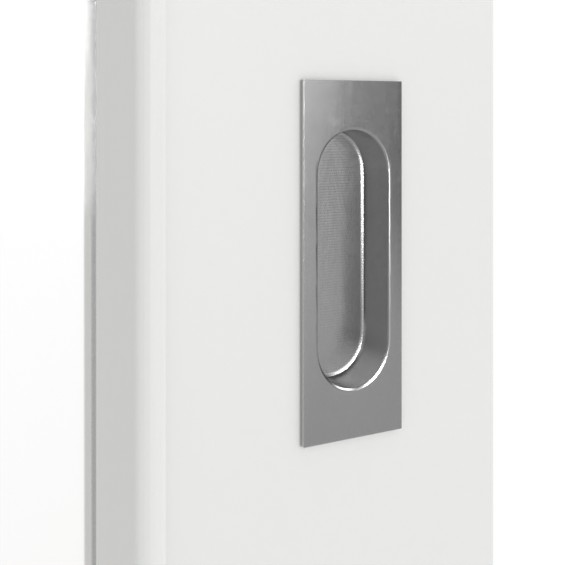 W zasadzie drzwi wykonane są z litej płyty wiórowej. W przeciwieństwie do klasycznych drzwi pokojowych, drzwi przesuwne otwierają się na bok, dzięki czemu powierzchnia w obszarze obrotu pozostaje dostępna. W zestawie znajduje się również rowek prowadzący do podłogi oraz uchwyt wpuszczany muszlowy w kolorze stali szlachetnej, który pięknie kontrastuje z pozostałymi elementami.