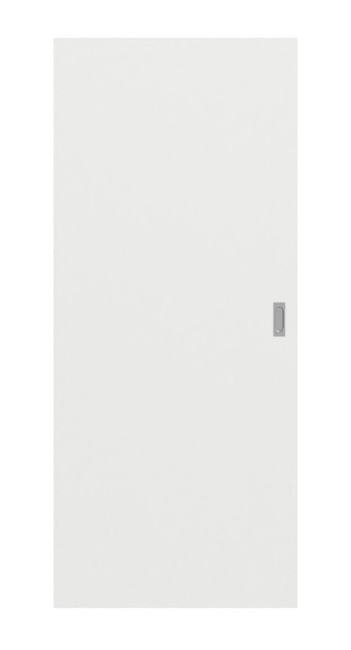 Rdzeń drzwi wykonany jest z płyty wiórowo-otworowej lub pełnej. Skrzydło drzwi przesuwające się w bok zapewni więcej miejsca w pomieszczeniu, ponieważ nie wymaga promienia otwarcia. W cenie zawarta jest prostokątna muszla uchwytu z owalnym wycięciem oraz rowek prowadzący na dnie.