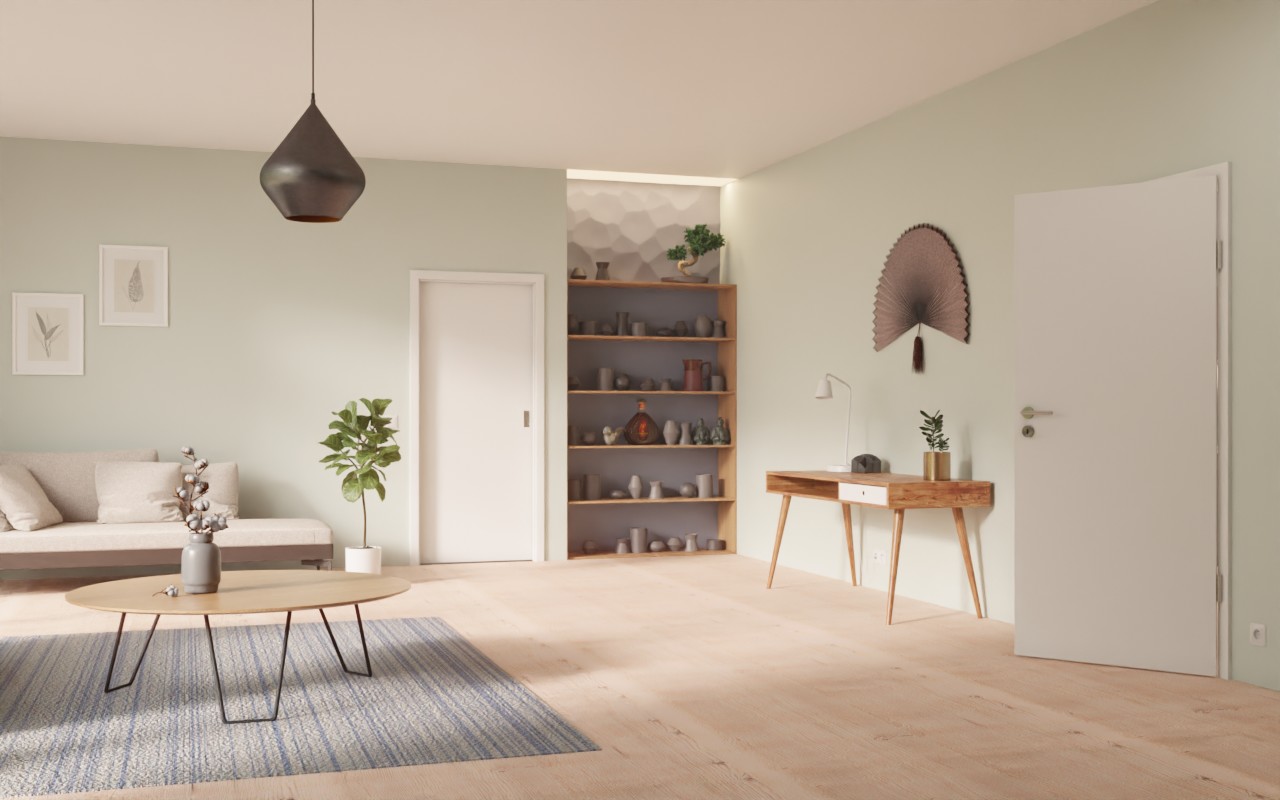 Matowy wygląd, gładka faktura: Drzwi przesuwne w matowym białym lakierze 9016 firmy Garant mają spokojny i zrównoważony wygląd.