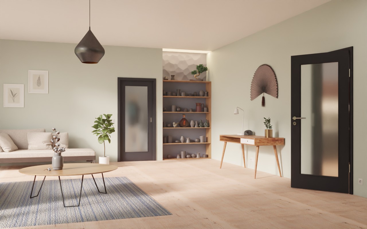 Atrakcyjne drzwi przesuwne z powierzchnią G-TEC w matowym RAL 9005 z właściwościami antyodciskowymi: