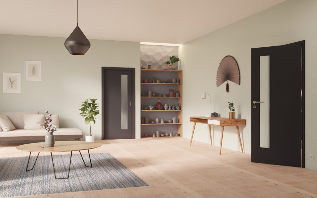 Estetyczne drzwi przesuwne z powierzchnią G-TEC w matowym RAL 9005 z właściwościami antyodciskowymi:
