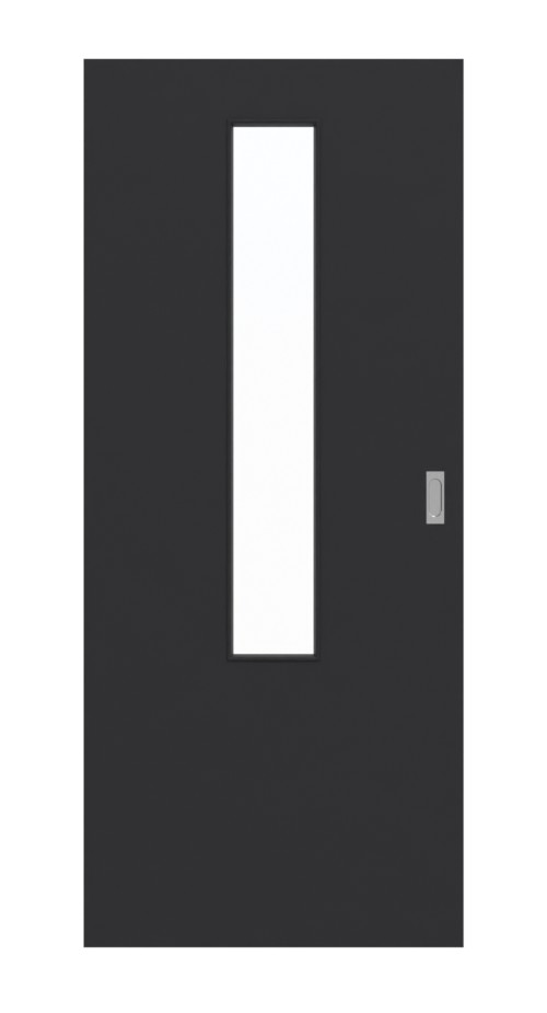 Nowoczesne drzwi przesuwne z folią G-TEC w matowym kolorze RAL 9005 - w zestawie z kwadratowym uchwytem i rowkiem podłogowym: