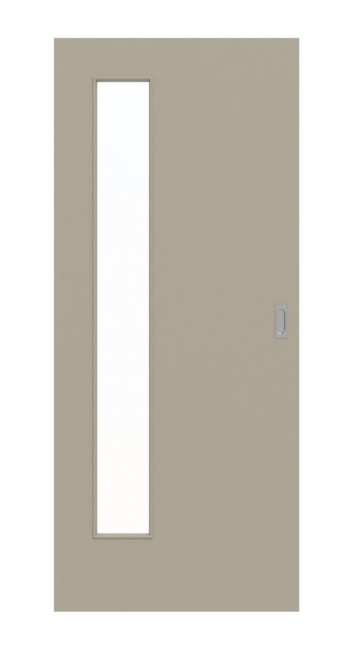 Sercem tych drzwi jest warstwa środkowa wykonana z litej płyty wiórowej. Dzięki liniowemu sposobowi otwierania zyskujesz więcej miejsca na podłodze w okolicy drzwi. W zestawie znajduje się również prostokątna muszla uchwytowa z owalnym otworem oraz rowek prowadzący na dnie.