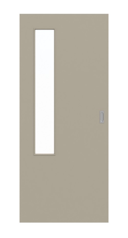 Rdzeń tych drzwi wykonany jest z płyty wiórowej pełnej. Ponieważ skrzydło drzwi nie otwiera się do wnętrza pomieszczenia, powierzchnia podłogi pozostaje w pełni dostępna. W zestawie znajduje się również rowek prowadzący do podłogi oraz uchwyt wpuszczany muszlowy w kolorze stali szlachetnej, który pięknie kontrastuje z pozostałymi elementami.