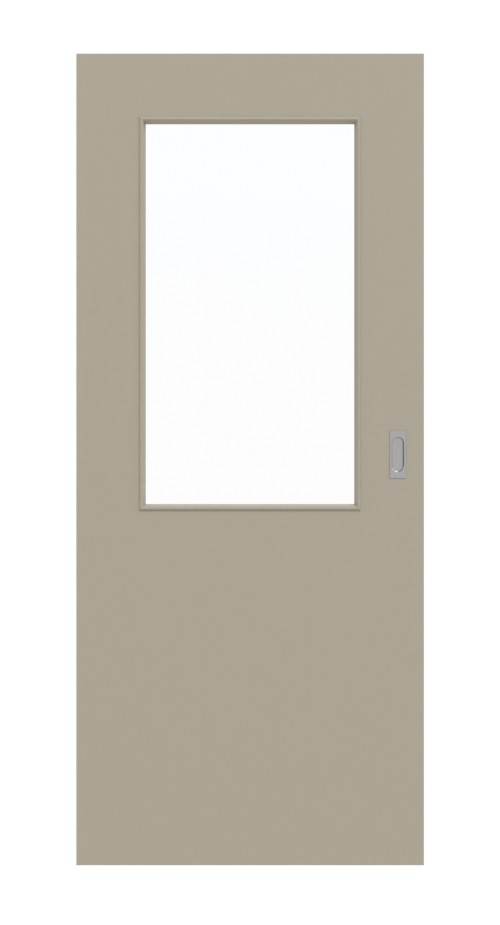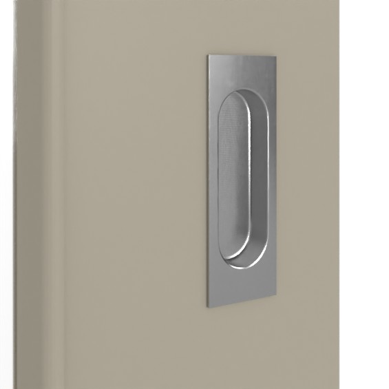 Rdzeń drzwi wykonany jest z litej płyty wiórowej. Odpowiednio wkomponowany w otoczenie model pełni rolę elementu zajmującego niewiele miejsca. W zestawie znajduje się również prostokątna muszla uchwytowa z owalnym otworem oraz rowek prowadzący na dnie.