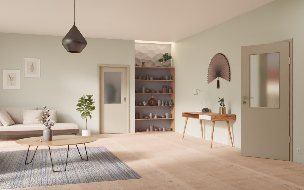 Nowoczesny wygląd: Drzwi przesuwne LA-6 w kolorze matowego szarego jedwabiu 7044 firmy Garant można w różnorodny sposób aranżować.