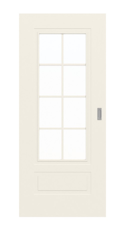 Trwałe drzwi z prowadnicą podłogową i kwadratowym uchwytem: