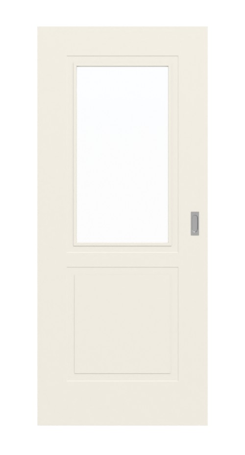 Na skrzydle drzwiowym wyfrezowano dwa prostokąty o wyglądzie kasetonowym. Górne służy jako ramka dla przeszklenia. Ponieważ satynowo-matowy biały lakier jest nakładany wielokrotnie i utwardzany promieniowaniem UV, powstaje trwałe i łatwe w pielęgnacji wykończenie o przyjemnej fakturze.