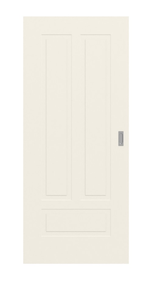 W rdzeniu drzwi przesuwnych znajduje się płyta wiórowo-otworowa, która zapewnia im niezbędną stabilność. Zestaw dostawy obejmuje, oprócz skrzydła drzwiowego i prowadnicy dolnej, również prostokątną muszlę klamki z owalnym uchwytem w stylu stali nierdzewnej.