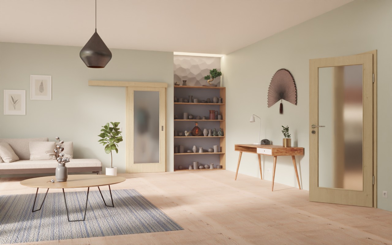 Duże przeszklenie zapewnia jasność w pomieszczeniach. Dzięki naturalnemu dekorowi w kolorze klonu drzwi pasują do wszystkich warunków montażu. Dzięki jasnym odcieniom design sprawia wrażenie powściągliwego. Pionowe usłojenia i drobne sęki zdobią skrzydło drzwiowe. Stabilna i wytrzymała powierzchnia z CPL jest odporna na obciążenia mechaniczne.