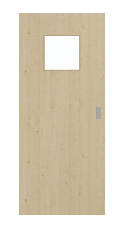 Światło wpada do pomieszczeń przez kwadratowy otwór świetlny, który jest wbudowany w górnej części skrzydła drzwi. Drzwi przesuwne w wykończeniu imitującym klon gustownie komponują się z nowoczesnym wystrojem wnętrz. Imitacja drewna zachwyca jasnymi odcieniami brązu. Delikatne usłojenia nadają całości harmonijny wygląd. Zastosowany laminat CPL wykazuje wyjątkową odporność na obciążenia mechaniczne.