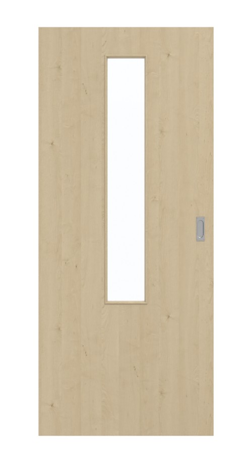 Dzięki wycięciu na szybę umieszczonemu na środku skrzydła drzwiowego światło wpada do Twojego domu, dzięki czemu możesz cieszyć się jasnym otoczeniem mieszkalnym. Drzwi przesuwne z dekorem klonowym stylowo komponują się z nowoczesnym wystrojem wnętrz. Imitacja drewna charakteryzuje się jasnymi odcieniami brązu. Pionowe słoje i drobne sęki zdobią skrzydło drzwi. Stabilna i łatwa w pielęgnacji powierzchnia z HPL jest odporna na obciążenia mechaniczne i wysoką temperaturę.