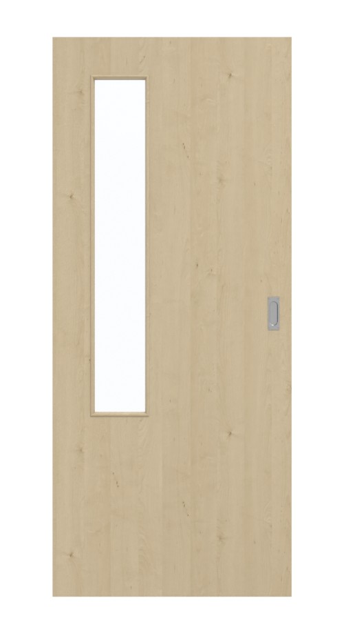 Ponieważ po stronie zawiasów w skrzydle drzwiowym znajduje się podłużne wycięcie na szybę, światło przenika do pomieszczeń. Dzięki naturalnemu dekorowi klonowemu ten model drzwi dyskretnie komponuje się z każdym otoczeniem. Jasna stylistyka sprawia wrażenie powściągliwej. Otwory po gałęziach i delikatne słoje zdobią skrzydło drzwi, tworząc harmonijny całościowy efekt. Powierzchnia HPL okazuje się niezwykle wytrzymała i odporna na wysoką temperaturę.