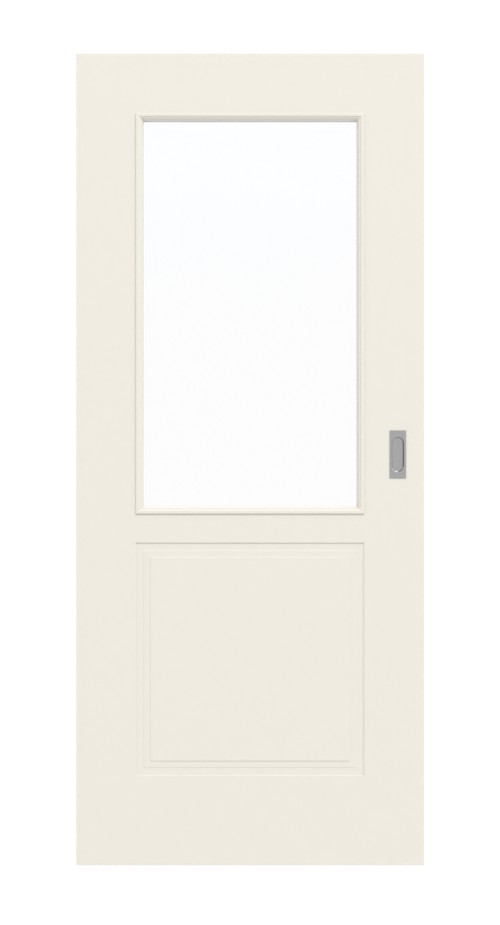 W górnej części drzwi wycięcie na szybę zapewnia wspaniały dopływ światła. Poniżej mniejszy, wyfrezowany kaseton profilowany zdobi skrzydło drzwiowe. Lakier biały utwardzany promieniowaniem UV, nakładany wielokrotnie, tworzy satynowo-matową powierzchnię, która pasuje do każdego wnętrza.