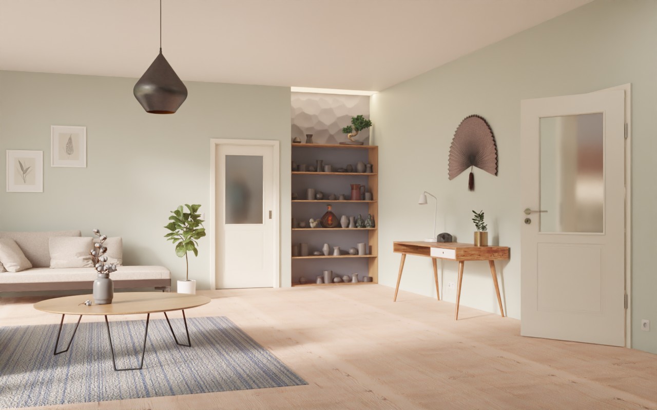 Wysokiej jakości model w białym lakierze z satynowo-matowym wykończeniem: Dzięki drzwiom przesuwnym Parma PFL2 firmy Garant można w stylowy sposób zaoszczędzić miejsce.