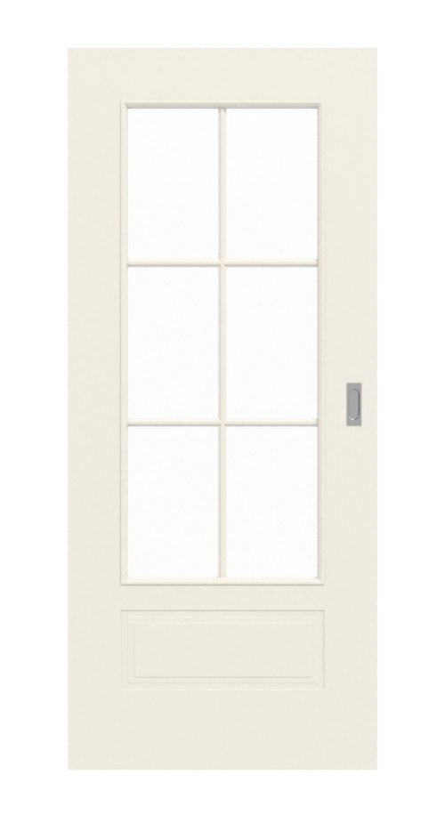 Delikatne szprosy zdobią duże przeszklenie, które zapewnia jasną atmosferę w pomieszczeniu. Poniżej profilowane frezowania tworzą płaską kasetę. Do wyboru są odcienie białej farby RAL 9010 i RAL 9016 . Nałożenie kilku warstw lakieru akrylowego tworzy jedwabiście matową powierzchnię o przyjemnej fakturze.