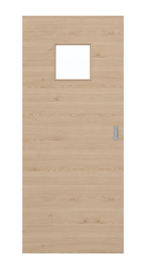 Indywidualny wygląd nadaje mu kwadratowe przeszklenie, umieszczone na wysokości oczu w skrzydle drzwiowym. Wzdłużne usłojenia nadają naturalnemu dekorowi drewna nowoczesny charakter. Drzwi przesuwne, dzięki swoim naturalnym brązowym odcieniom, tworzą przytulną atmosferę. Zarysowania i zużycie mechaniczne nie mają prawie żadnego wpływu na powierzchnię CPL.