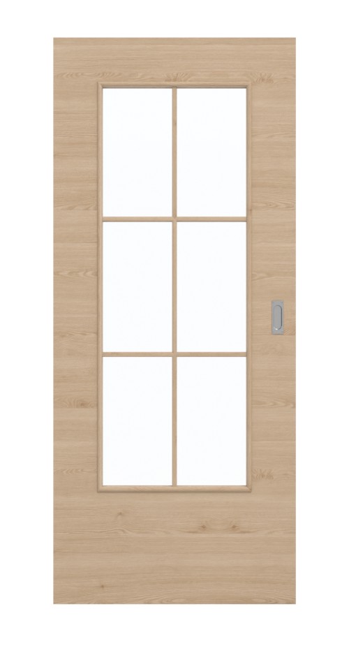 Umieszczony pośrodku otwór na światło zapewnia jasność i przyjemną atmosferę w Twoim domu. Ozdabiają go proste, równomiernie rozmieszczone szczeble. Poprzeczne słoje nadają dekorowi drewnianemu wyrafinowany, nowoczesny charakter. Te dynamiczne rysunki sprawiają wrażenie harmonijnych. Dzięki naturalnej kolorystyce drzwi przesuwne tworzą przytulną atmosferę w Twoim wnętrzu. Materiał powierzchniowy wykonany jest z łatwego w pielęgnacji i wytrzymałego CPL.