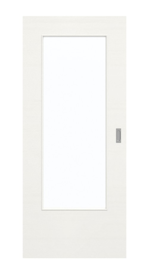 Przeszklenie na środku skrzydła drzwiowego zapewniające jasność i przyjazną atmosferę we wnętrzu. Dzięki białemu dekorowi drewna model z drzwiami przesuwnymi prezentuje się nowocześnie. Drobne usłojenia przebiegają w poprzek skrzydła drzwiowego. Dyskretny design drzwi pasuje do każdego wystroju wnętrza. Wierzchnia warstwa wykonana z HPL jest niezwykle odporna na działanie światła, ciepła i zużycie mechaniczne.