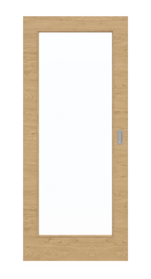 Jasność w pomieszczeniach zapewnia duży otwór świetlny, który stylowo eksponuje skrzydło drzwi. Nowoczesny design charakteryzuje te naturalnie brązowe drzwi przesuwne. Wyrafinowany efekt daje wzdłużne ułożenie dekoru dębowego. Dynamiczne usłojenia i subtelne sęki przyciągają wzrok. Materiał powierzchniowy wykonany z CPL jest wytrzymały i odporny na zarysowania.