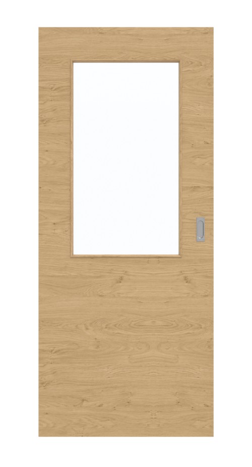 Szerokie, prostokątne przeszklenie w górnej części drzwi zapewnia duży dopływ światła do wnętrza domu. Ten model drzwi przesuwnych w naturalnym brązowym kolorze wyróżnia się nowoczesnym wyglądem. Poprzeczny wzór imitujący drewno dębowe wprowadza rustykalny klimat do Twojego domu. O autentyczność dbają dynamiczne słoje i subtelne sęki. Stabilna i wytrzymała powierzchnia z CPL jest odporna na obciążenia mechaniczne.