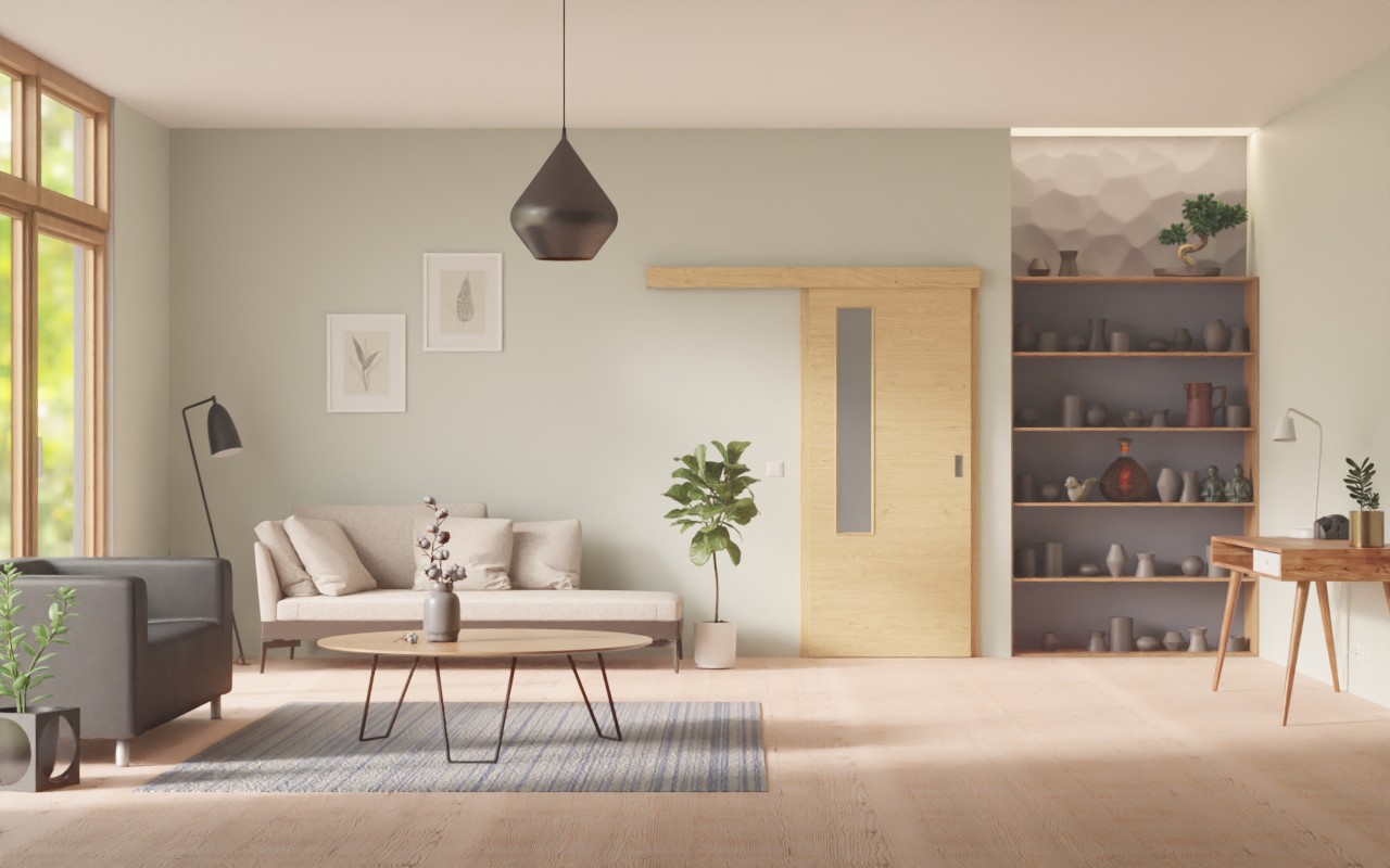 Tworzy przytulną atmosferę: Drzwi przesuwne LA-5 po stronie zawiasów Quer Authentic dąb szypułkowy firmy Garant zwiększą komfort codziennego użytkowania.