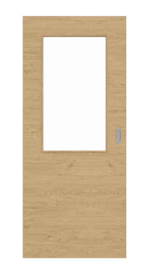 Dzięki szerokiemu otworowi okiennemu, który w górnej części rozciąga się niemal na całej szerokości skrzydła drzwi, do Twojego domu wpada dużo światła. Te nowoczesne drzwi przesuwne charakteryzują się naturalnymi odcieniami brązu. Szczególnie wyrafinowanym detalem jest poprzeczny dekor dębowy. Wyraziste słoje i delikatne sęki dopełniają całości. Trwała i łatwa w pielęgnacji okładzina z HPL dobrze znosi obciążenia mechaniczne i wysoką temperaturę.