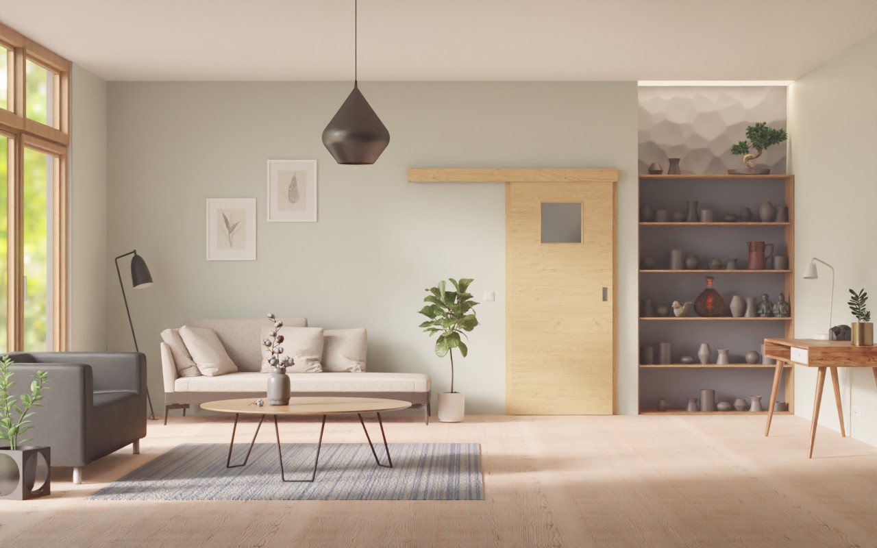 Rdzeń drzwi wykonany jest z płyty wiórowej pełnej. Ze względu na klasyfikację do grupy obciążenia M nadaje się zarówno do powierzchni prywatnych, jak i komercyjnych. W zamówieniu automatycznie uwzględniono uchwyt wpuszczany muszlowy owalny i rowek prowadzący podłogowy.