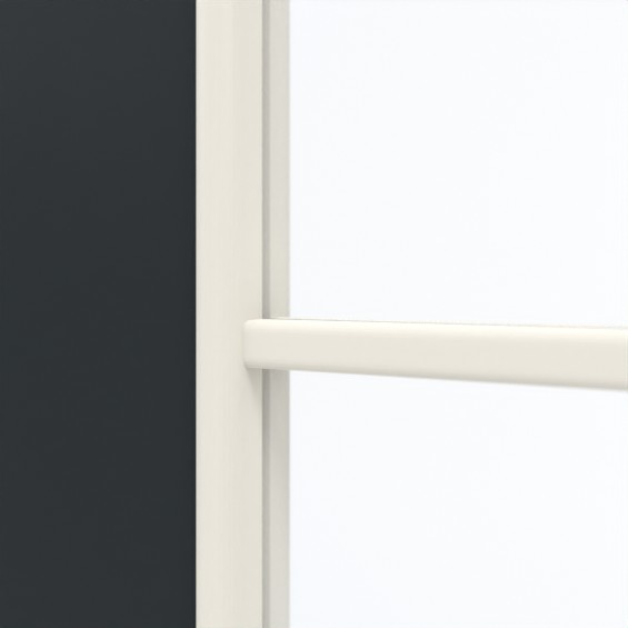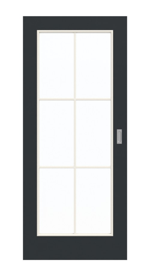 Dzięki dużym przeszkleniom do pomieszczeń wpada dużo światła, co tworzy przyjemną atmosferę we wnętrzach. Elegancka rama z szprosami dzieli przeszklenie na sześć równych pól. Czarne drzwi przesuwne charakteryzują się nowoczesnym urokiem. Ciemna czerń wulkaniczna doskonale się komponuje. Światło, wysoka temperatura i ścieranie mechaniczne nie są w stanie uszkodzić wytrzymałej warstwy wierzchniej z HPL.