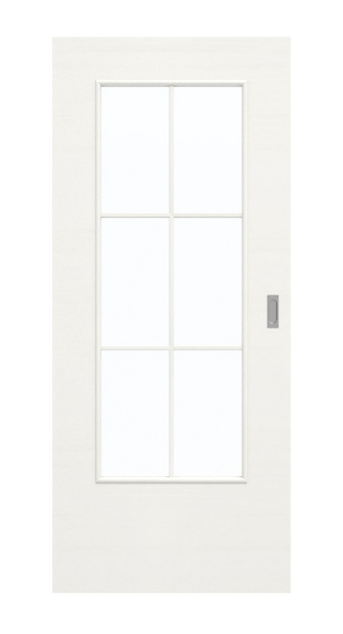 Dzięki szklanemu wycięciu pośrodku skrzydła drzwiowego możesz cieszyć się jasnymi wnętrzami. Ozdabiają go proste, równomiernie rozmieszczone szczeble. Drzwi przesuwne z białym dekorem drewnianym wyróżniają się nowoczesnym wyglądem. Poprzeczne słoje dopełniają ten projekt. Ten dyskretny projekt doskonale komponuje się z każdym otoczeniem. Światło, wysoka temperatura i ścieranie mechaniczne nie są w stanie uszkodzić wytrzymałej warstwy wierzchniej z HPL.
