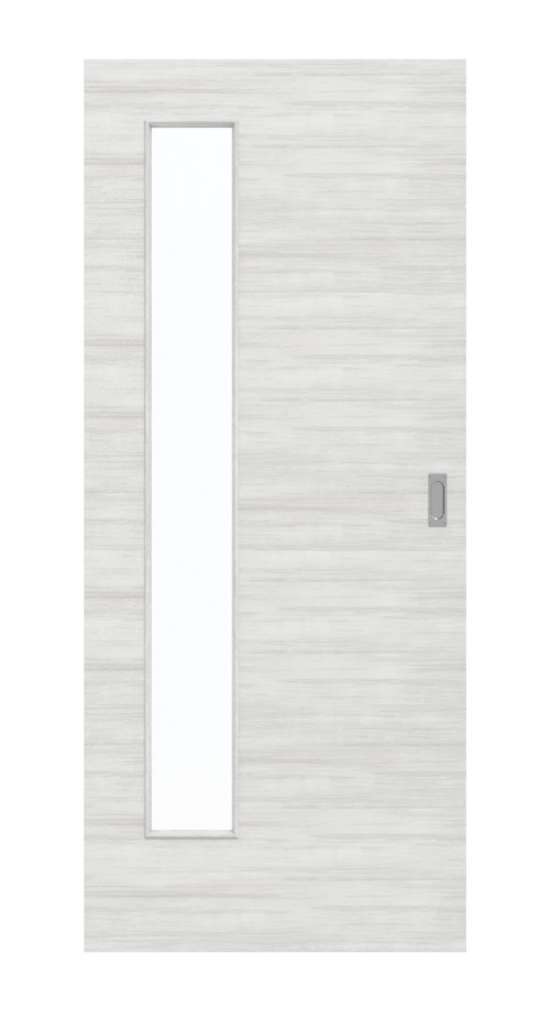 Wąski, prostokątny wycięty otwór zdobi bok skrzydła drzwiowego. Modne są drzwi przesuwne z szarym dekorem drewna. Urozmaicenie zapewniają filigranowe usłojenia. Dekor jest zorientowany poziomo. Powierzchnia HPL wykazuje się wyjątkową odpornością na obciążenia mechaniczne.