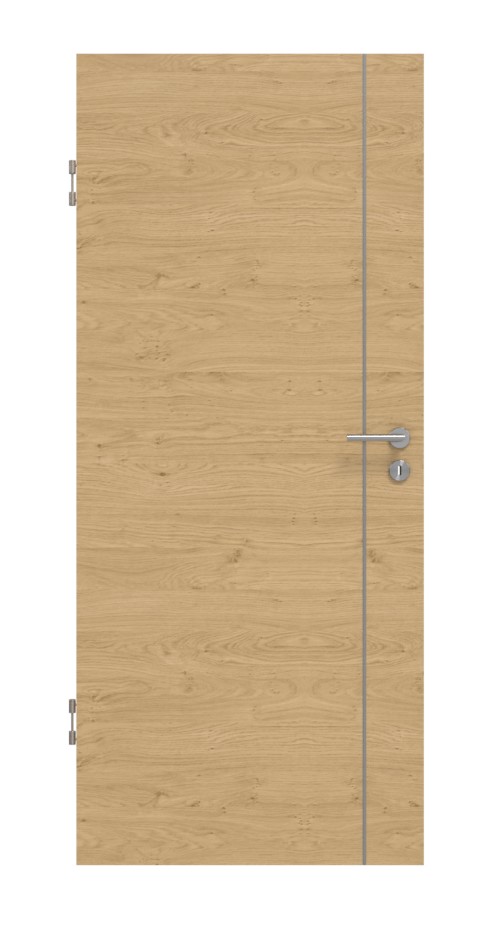 Od strony zamku skrzydło drzwi zdobi długa, pionowa liza . Przyjemny dla oka wygląd drewna w dekorze Authentic Asteiche zyskuje nowoczesny charakter dzięki poziomemu układowi desek. Powłoka CPL jest łatwa w czyszczeniu oraz odporna na uderzenia i zarysowania.